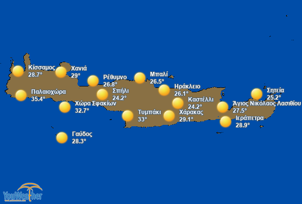 Ο καιρός τις επόμενες 14 ημέρες σε κρήτη. Τι καιρό θα κάνει στην ελλάδα. Πρωτεύουσα και μεγαλύτερη πόλη της είναι το ηράκλειο. Εφημερεύοντα φαρμακεία νομού ηρακλείου, κρήτη. Ο καιρός για περισσότερες από 99 πόλεις και περιοχές σε κρήτη.